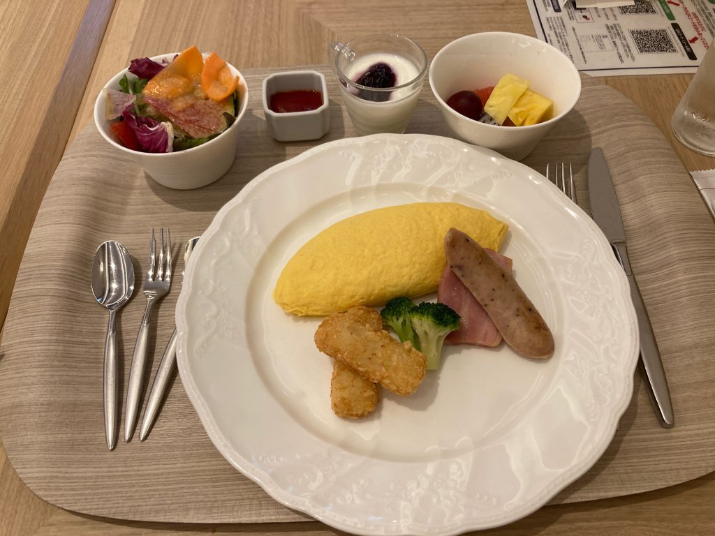 翌朝早めに目覚め、朝食は洋食チョイスホテルのオムレツって美味しいですよね。