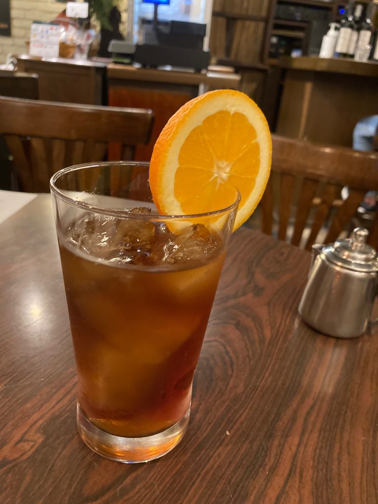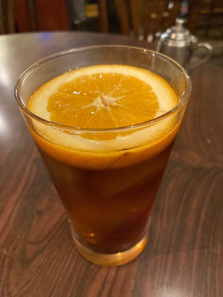 最後に薄く切ったオレンジをアイスティーに浮かべたら凄いことになりました。