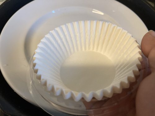 生地をクッキングシートの上に乗せるのですが、100均でクッキングシートでできたカップが売ってたのでそちらを使いました。