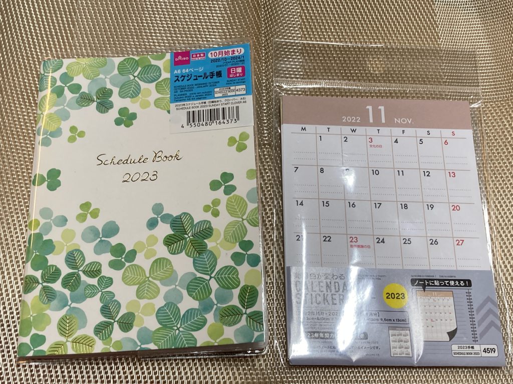 今年もダイソーでいつものA6サイズ日曜始まりを無事入手。一緒にカレンダーシールも購入しました。
